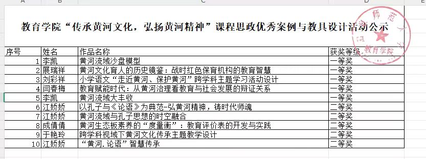 学院教师积极参与,设计黄河流域沙盘模型,提交黄河文化课程思政案例。经过专家评审,共评选出一等奖4名,二等奖6名,这些获奖作品和优秀案例为服务黄河国家战略提供了新动能。