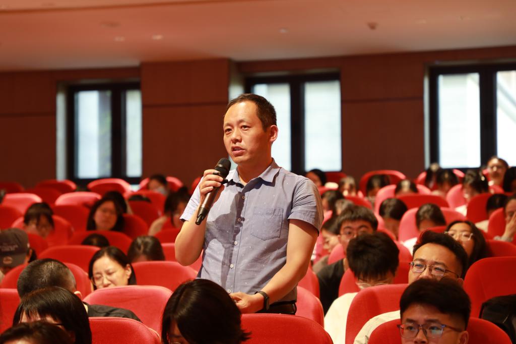 交流互动环节,与会师生围绕“高校分类改革的实施路径”“当代大学生的素质要求”“学习体验的内涵界定”“高效课堂的设计原则”等问题与史教授展开深入交流。