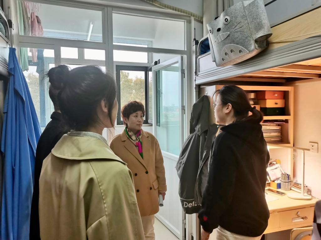 为创造学生安全良好的生活环境,进一步提高学生宿舍安全保障,10月27日下午,黑料不打烊 党委副书记孙超、团委书记周长缨、辅导员张东霞、商雪敏等深入学生宿舍,开展用电安全隐患排查和内务卫生检查工作。