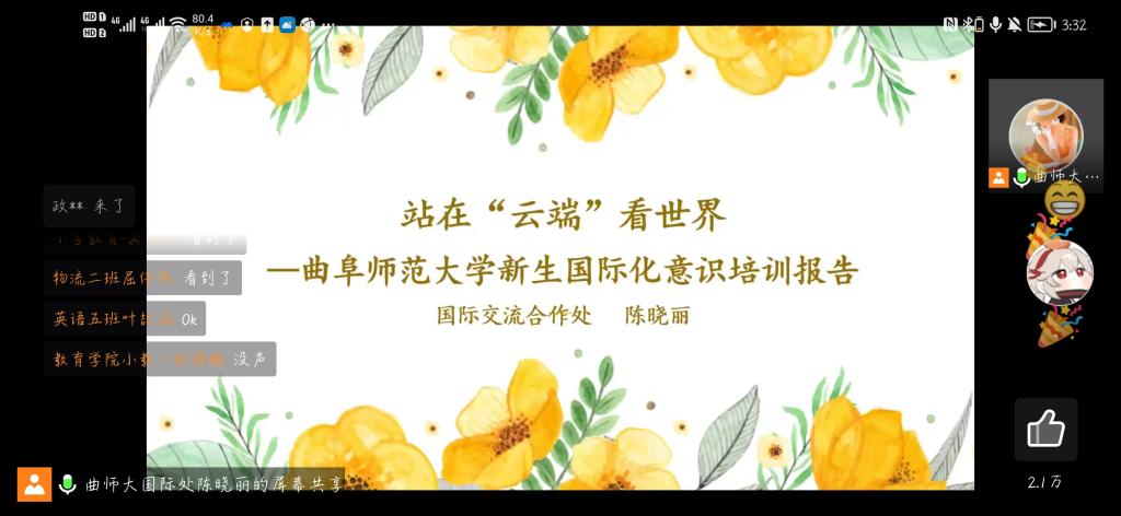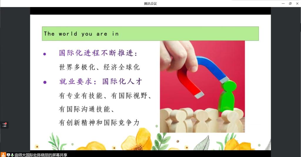 新生国际化意识培训线上报告会,报告会由学校国际交流合作处陈晓丽老师主讲。