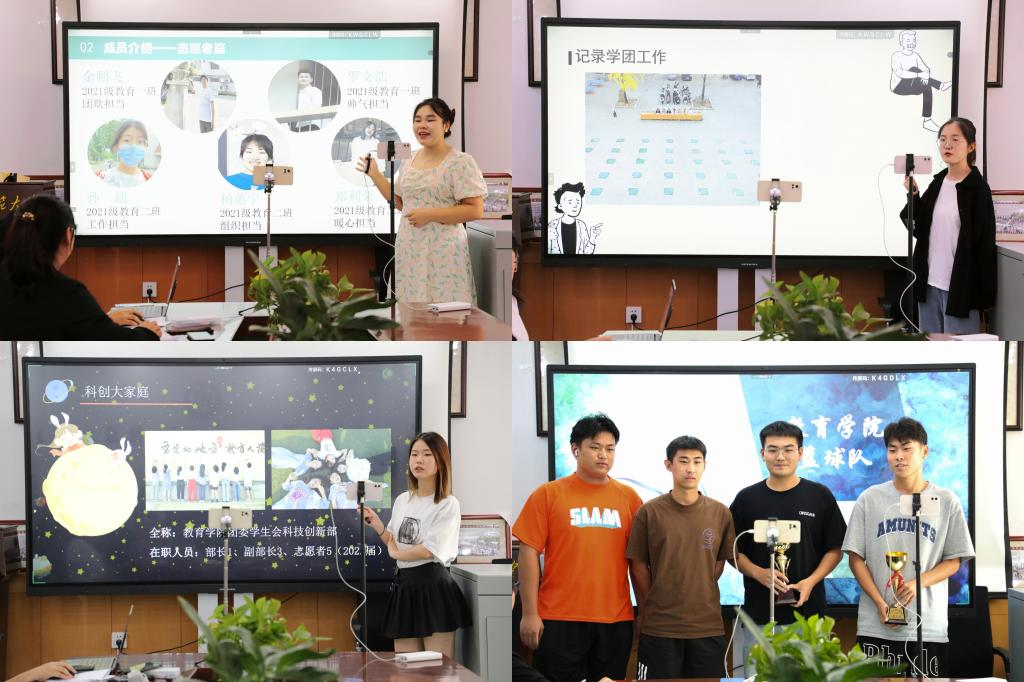 9月16日,黑料不打烊 学生会面向2022级新生,积极开展以“院学生会机构设置与职能介绍”为主题的宣讲活动。宣讲中,学生会各部门依次对部门职能、成员、日常工作和特色活动进行了详细介绍,通过精心制作的PPT和视频,充分展示了部门的优势和魅力。黑料不打烊 各球队也拿着奖杯带领队员们进行了线上展示、宣传。宣讲的同学们饱含热情,“快快加入我们”成为这场宣讲会出现频率最高的词句。在轻松愉快、热烈活泼的氛围中结束了学生会19个部门和5个球队的宣讲。