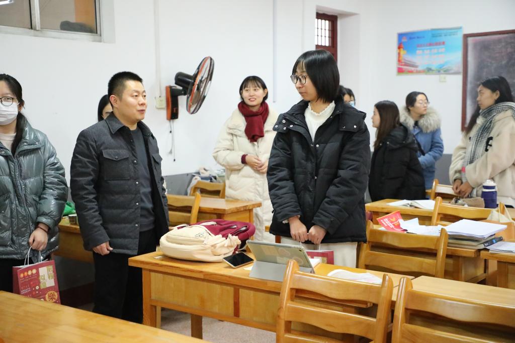 党委书记尹树林、党委副书记孙超带领全体辅导员到自习室走访慰问考研“冲刺”毕业生,为即将参加考研的毕业生送去温暖和鼓励。