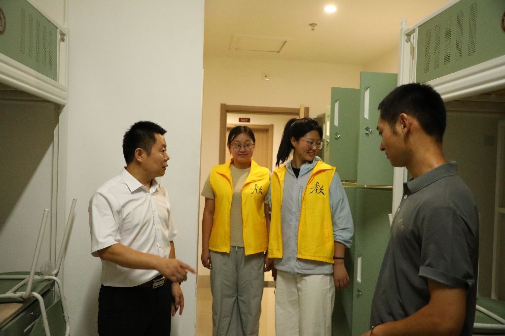 团委学生会全体成员共同努力下,2025级新生公寓用品搬运分发工作圆满完成。教育学部党委副书记孙超、2025级新生辅导员杨克走进新生宿舍,现场指导公寓用品分发,慰问参与搬运分发工作的志愿者。