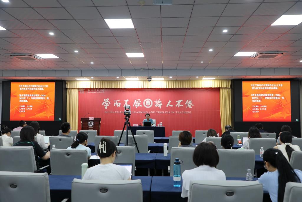高宝立教授从明确方向、拓宽视野、增强自觉、成为乐趣、理清思路、追求卓越六个维度系统阐述了教育科研论文撰写方法及注意事项。他指出,新时代教育改革发展的战略部署为教育科学研究提供了根本遵循,《教育强国建设规划纲要(2024—2035年)》拓宽了研究视野,提出了新的课题和研究任务。在此基础上,高教授强调,优秀论文的选题与结论应准确体现研究主旨,充分彰显研究的核心价值。论文所提出的研究问题必须根植于丰富的教育实践,确保研究成果具有鲜明的实践导向,为推动教育改革与发展提供有力支持。