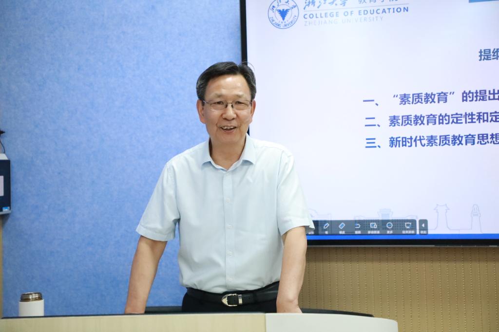 学术委员会主任、教育部“长江学者”特聘教授张应强教授作题为“从党的教育方针看素质教育思想的新发展”的学术报告。教育学部党委书记尹树林主持活动。