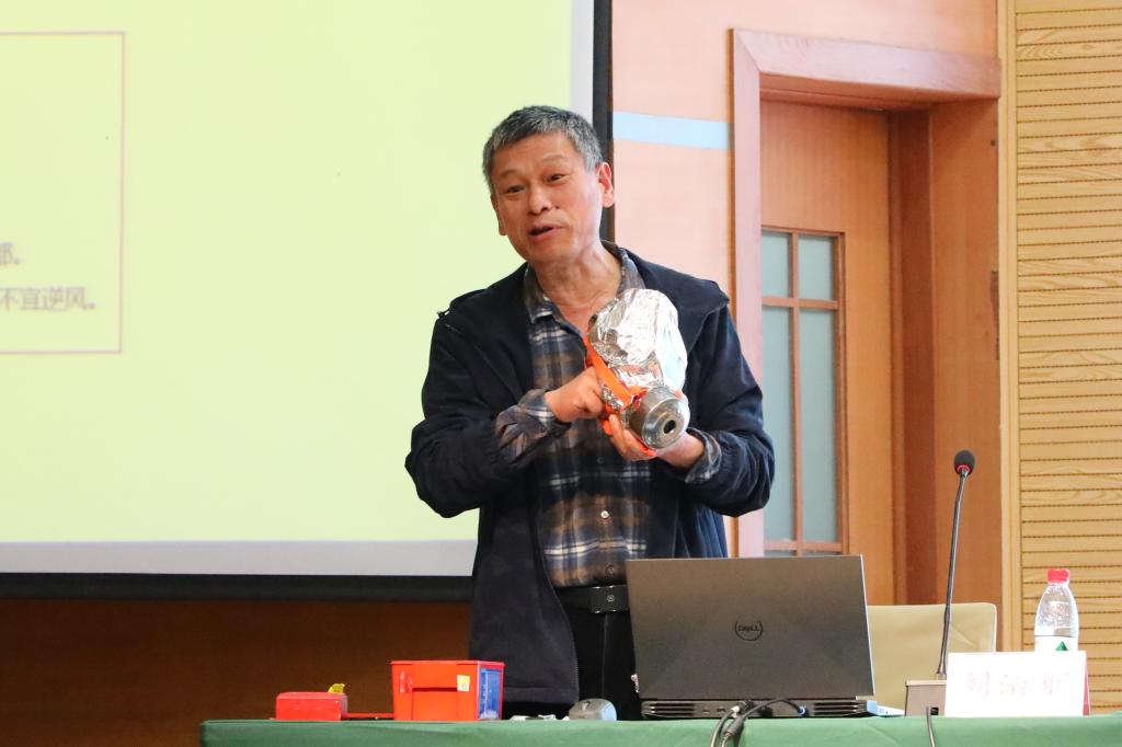本次活动共分为消防安全知识培训、应急疏散演练、灭火实操演练三个部分。刘淑朋首先向师生们系统讲解了常见火灾与校园火灾发生的原因及预防措施,并结合近年典型火灾案例着重强调了在火灾发生时的逃生注意事项。他还带领大家认识了常见消防器材与标志,介绍常用灭火器的使用方法,通过生动且详实的讲解,有效提升了师生对消防安全的认知与重视程度。