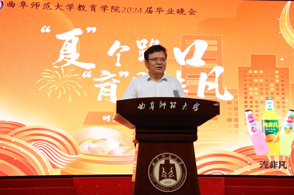 院长唐爱民教授上台致辞。他代表全院师生为2024届毕业生们送上了真挚的毕业寄语:希望每一位毕业生都能保有学者的情愫、敬业的情怀和爱国的情操走进社会,祝愿毕业生们在未来的事业和生活中,前程似锦,幸福圆满。