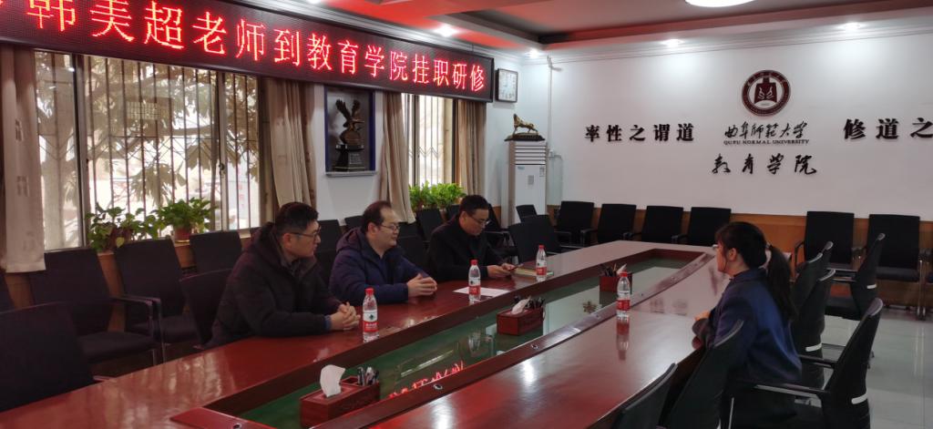 的学科建设、人才培养等方面所取得的成绩,重点介绍了学前教育专业的建设与发展情况,希望韩美超老师能够积极参与学院的各项活动,圆满完成研修任务。徐瑞和齐军分别就分管领域介绍了学院的相关情况,为韩老师旁听本硕课程、参与交流研讨等活动提供相关信息和帮助。最后,韩美超老师感谢学院的大力支持,表示会潜心研修,通过学习交流不断提高自己的能力和水平。