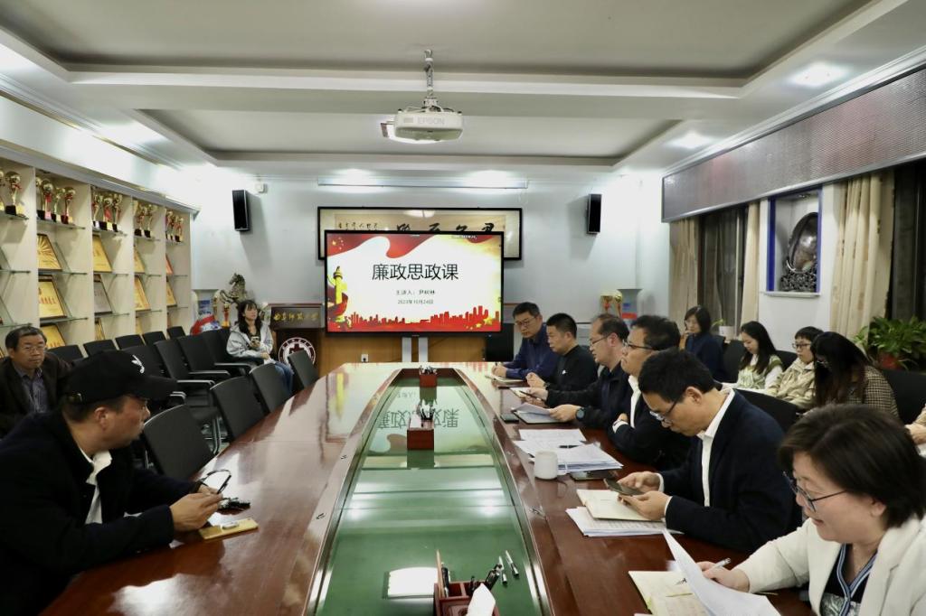 课上,尹树林带领老师们认真学习《新时代教师高校教师职业行为十不准》,通报近期国内违反教师廉政的反面案例,并结合党的十八大以来习近平总书记围绕党风廉政建设做出的一系列重要论述,对新时代廉洁文化建设、廉洁精神进行了深刻阐述。他指出,高校教师思想廉政素质、思政水平事关立德树人根本任务落实成效,深刻影响高等教育高质量发展的进路,同时也是广大教职工纯净风气的“试金石”。