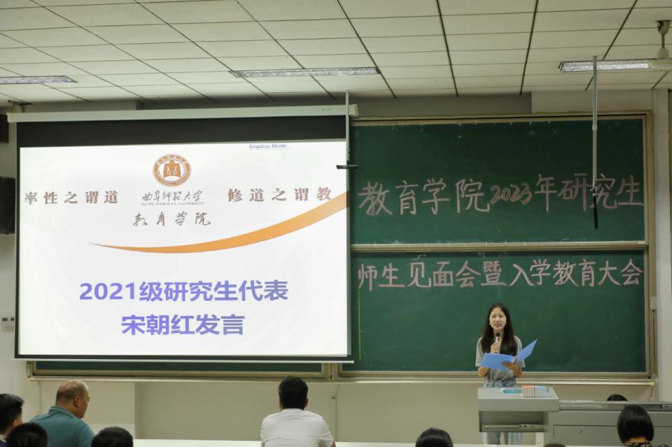 2021级研究生代表宋朝红、2023级研究生新生代表彭姿铭依次发言,希望大家在学习中明确目标、自主创新,博采众长、厚积薄发,修身立德、志存高远,在曲园谱写奋斗华章。