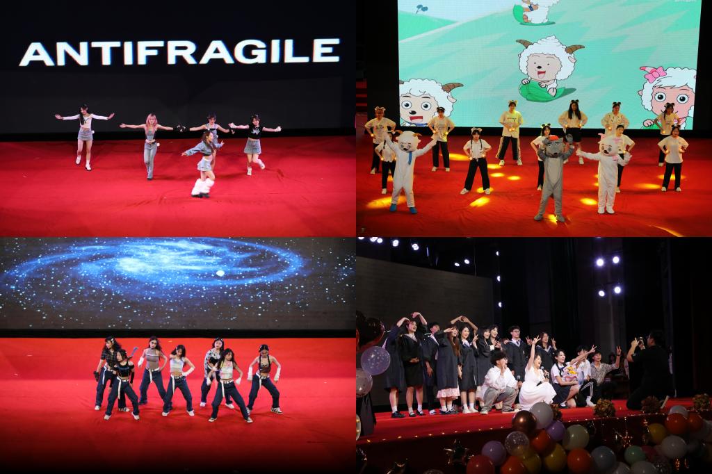 晚会分为“再育”“再见”“再遇见”三个篇章。第一篇章“再育”中,充满青春力量的《Fiesta》舞蹈欢乐开场,《星辰大海》《民舞串烧》等节目活力四射,精彩纷呈;第二个篇章“再见”中,《背对背拥抱》《可惜不是你》和《再见》的旋律,离别的氛围渐浓,勾起了毕业生们对母校和学院的眷恋之情;第三篇章“再遇见”中,老师们在寄语视频中表达了对毕业生的殷殷期望与美好祝愿,在《爱要坦荡荡+我们一起喜羊羊》《Leftright》等充满活力、朝气的欢快节目氛围中,我们终会“再遇见”。