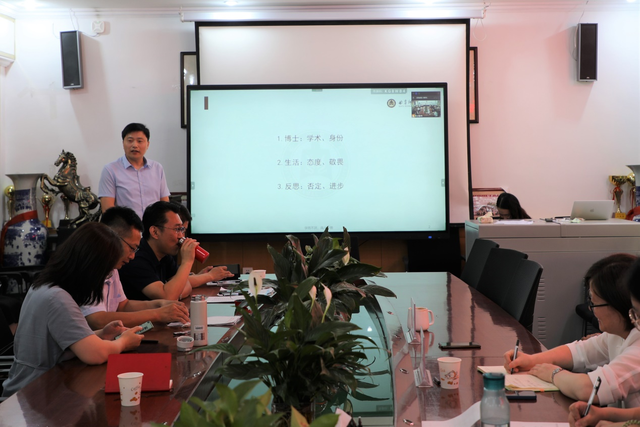2022届博士毕业生学术生活经验分享会于学院101会议室顺利举行。本次分享会借助腾讯会议,以线上、线下相结合的方式开展。分享会的主讲人为2022届顺利通过博士学位论文答辩的七位博士生:任祥华(教育领导与管理)、于家杰(教育领导与管理)、刘丙利(教育领导与管理)、李春迪(教育领导与管理)、刘永(教育领导与管理)、姬晓灿(学校课程与教学)、夏小娜(教育技术学)。出席本次分享会的嘉宾有:黑料不打烊