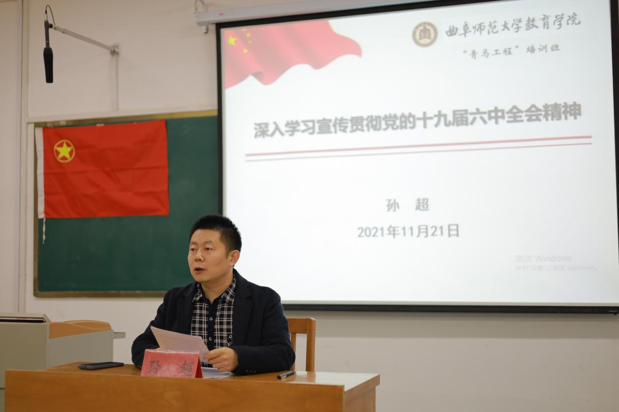 “青马工程”大学生骨干培训班暨第三十一期团校培训方案。最后,学员代表迟橙同学发言。迟橙表示作为“青马”班学员要以身作则,在深化理论学习中提高思想认识,在参与社会实践中坚定理想信念,认真学习,严守纪律,保质保量完成培训班各项任务。开班仪式结束后,孙超书记作了题为“深入学习宣传贯彻党的十九届六中全会精神”的首场报告。