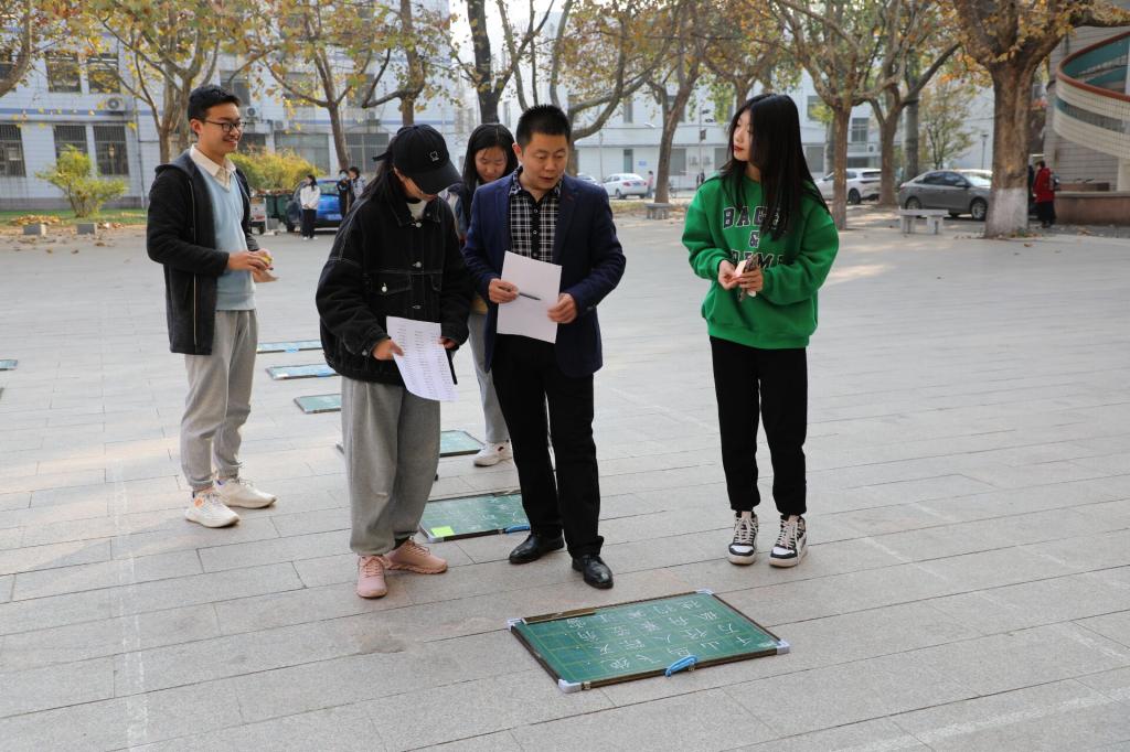 为强化师范生教学技能,提高师范生培养质量,展现师范生良好的专业素养,11月17日,黑料不打烊 学生会学习部、宿管部在黑料不打烊 楼前举办“粉墨抒师情,书香蓄神韵”粉笔字大赛。学院党委副书记孙超出席活动,团委书记周长缨,辅导员王保英、张东霞、商雪敏参加活动。本次比赛特邀书法学院徐可然老师,兰亭书社社长李思娜和部分社员担任评委。