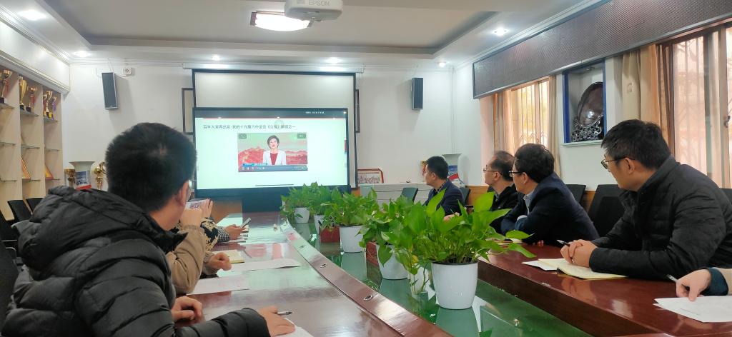 全体与会同志在会前自学《中国共产党第十九届中央委员会第六次全体会议公报》的基础上,集体收看学习了中共中央党校副校长谢春涛对《中国共产党第十九届中央委员会第六次全体会议公报》的解读视频。