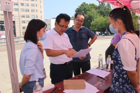 党委书记尹树林、院长唐爱民、党委副书记孙超及辅导员商雪敏在现场对迎新工作进行指导与安排,并与新生进行亲切交流。我院迎新工作人员耐心的为新生核酸检测、入学登记、安排住宿,让他们感受到教育学院的热情和关爱。