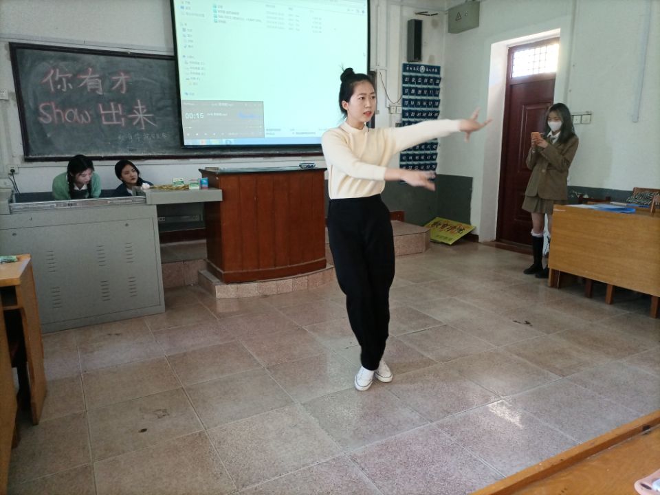 活动起始,主持人上台主持开场,宣布比赛开始。参赛选手以舞蹈和歌唱为主要表演形式,舞蹈表演展现了选手优秀的舞台表现力,歌曲演唱表达了选手丰富细腻的情感。最后评委根据表演情况进行现场打分,比赛在活跃的气氛中落下帷幕。本次比赛迟橙获得一等奖;张晓萱,安芮萱获得二等奖;冀叶文锡,李雨珊,惠子淑队,秦乐妍队,获得三等奖。