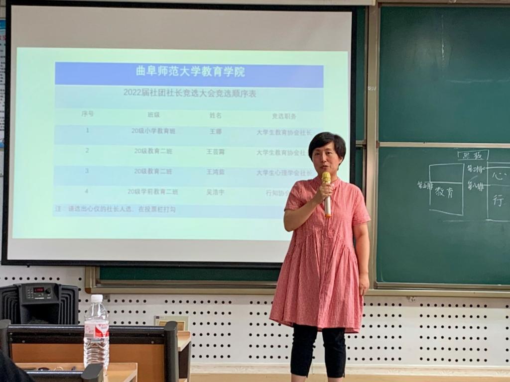 首先,候选人按照顺序依次上台发表演讲,进行简单的自我介绍并分享一年来所做的工作和个人进步的心得。从对社团工作的认知、工作经验以及未来工作计划等方面做了详细的演讲。紧接着,各个社团成员分别进行投票,选出所在社团的新一届社长。经投票表决,王娜当选大学生教育协会社长,王鸿茹当选大学生心理协会社长,吴浩宇当选行知协会社长。最后,周长缨老师为大会做总结,赞扬同学们以高度的使命感和责任感积极参与竞选,为学生社团的发展贡献出自己的力量,为学院未来工作的发展打开了良好开端。鼓励大家要团结一致、共同努力,扎扎实实地开展工作。