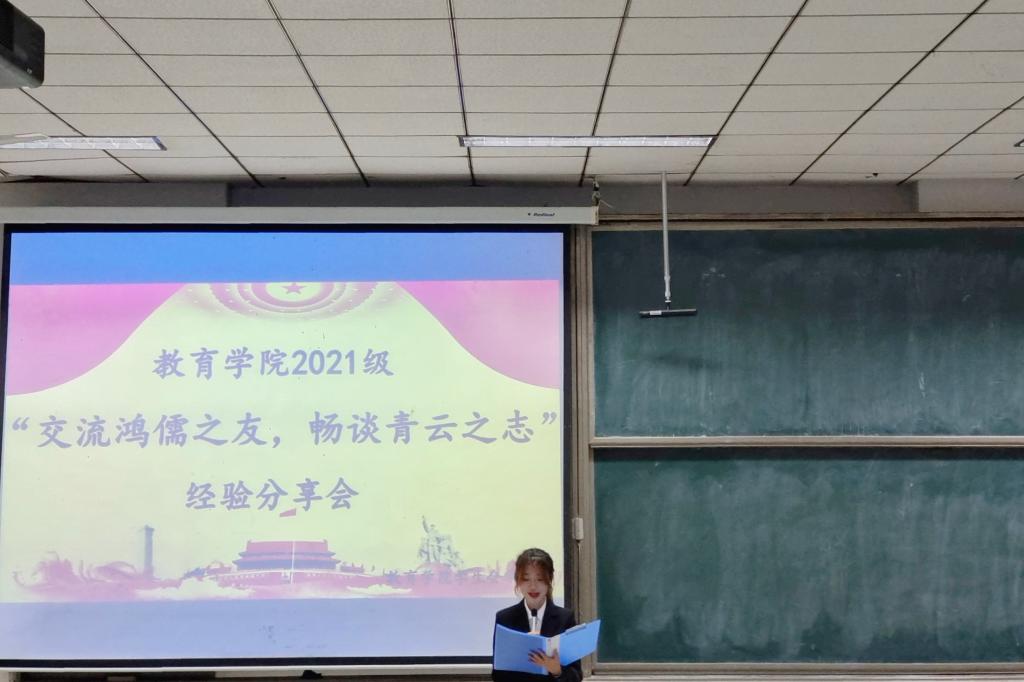 学生会学习部主办的“交流鸿儒之友,畅谈青云之志”经验分享会在综合楼101教室顺利举行。此次经验分享会面向2021级全体学生,特邀学生会副主席吴沂骏、学生会副主席郑晓萱、2020级刘亚蕊到场为同学们分享经验。