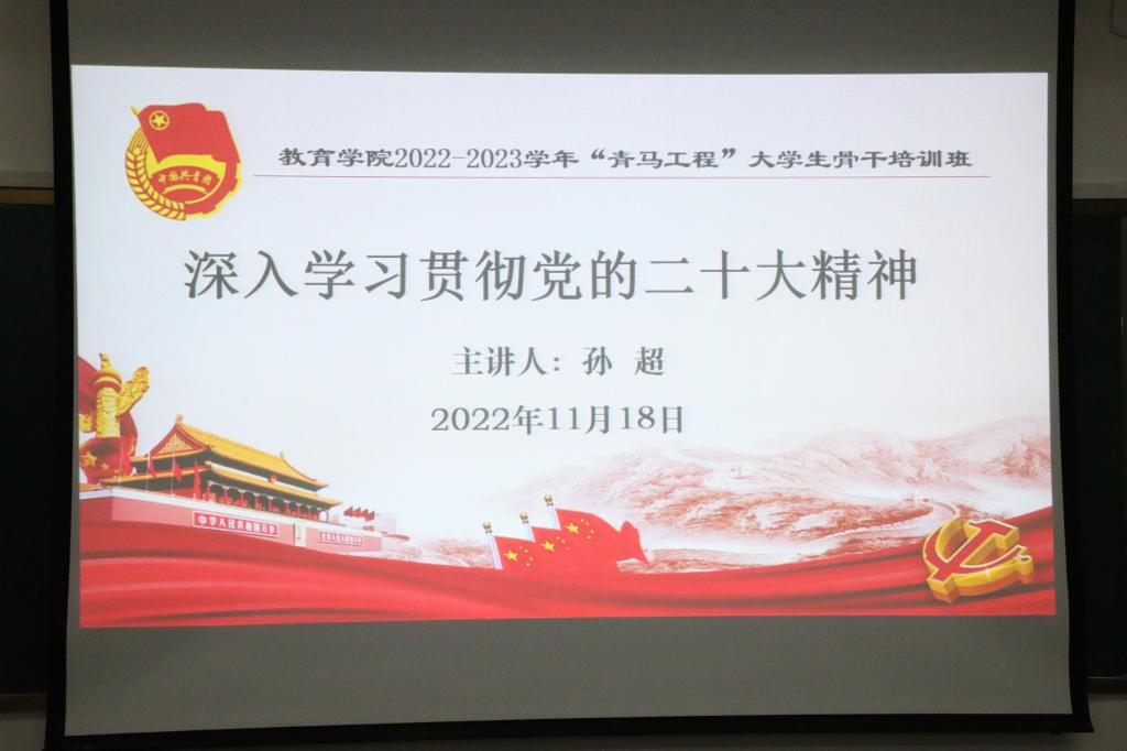 在课堂上,孙超从党的二十大主题和主要成果、过去5年的工作和新时代10年的伟大变革、马克思主义中国化时代化、中国式现代化、全面建设社会主义现代化国家的目标任务、坚持党的全面领导和全面从严治党、应对风险挑战、青年学生的时代重任与担当等八个方面,对党的二十大精神作了系统、深入的解读。他指出,党的二十大是在全党全国各族人民迈上全面建设社会主义现代化国家新征程、向第二个百年奋斗目标进军的关键时刻召开的一次十分重要的大会,具有重大现实意义和深远历史意义。学习领会党的二十大精神,应该成为青年学生砥砺品格的“思政课”、成长成才的“必修课”。他强调,作为新时代的大学生,特别是大学生骨干,要坚定不移听党话、跟党走,努力成长为堪当民族复兴重任的时代新人;要志存高远、脚踏实地,在实现中华民族伟大复兴的时代洪流中踔厉奋发、勇毅前进;要把争做有理想、敢担当、能吃苦、肯奋斗的新时代好青年作为个人的内心追求和奋斗目标。