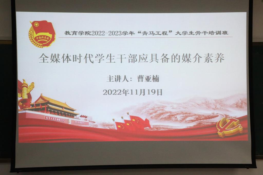 2022-2023学年“青马工程”大学生骨干培训班第三讲顺利举行。本期课程由学生工作处教育科科长曹亚楠老师主讲。