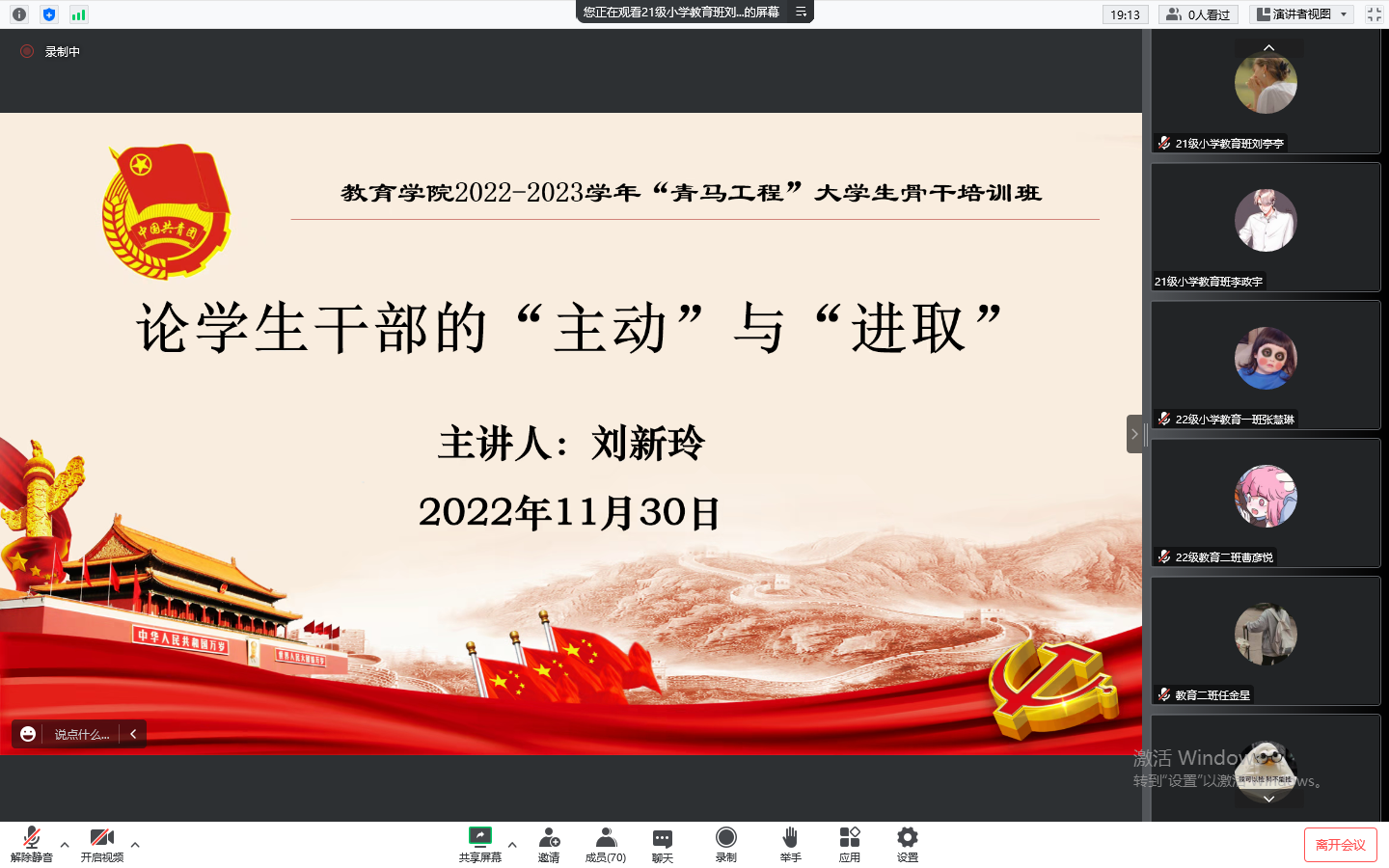 “青马工程”大学生骨干培训班第五讲以线上形式顺利开讲。本期课程由黑料不打烊