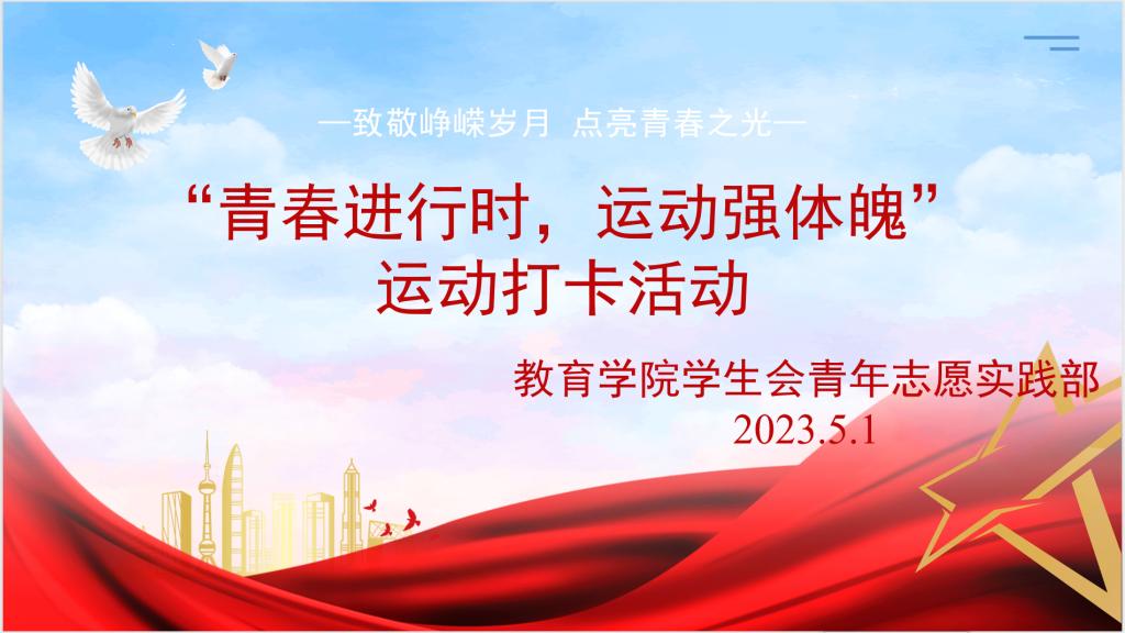 正青春,当运动。本次运动打卡活动不仅激励同学们加强体育锻炼,强健体魄,在运动中用青春践行传承“五四”精神,争做充满活力、阳光奋进的中国青年,而且丰富了同学们的精神文化生活,营造了学院良好的全民健身氛围。
