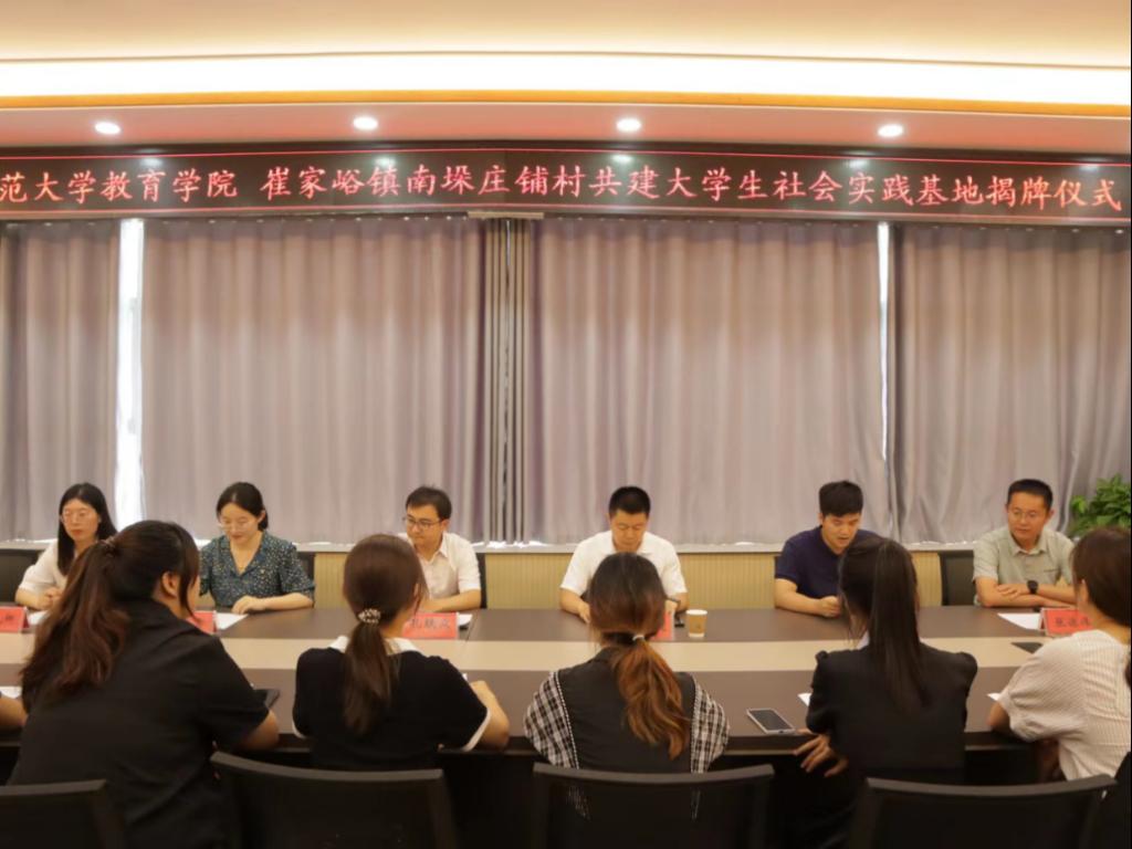 的发展历程,并为崔家峪镇对曲阜师大学生社会实践给予的高度重视和大力支持表示感谢。他希望通过共建大学生社会实践基地,搭建起校地合作桥梁,并勉励学生要深入社会,积极投身实践,在实践中磨练意志、坚定信念、培养本领,更好地服务社会,展现曲阜师大青年学子昂扬向上的风采。