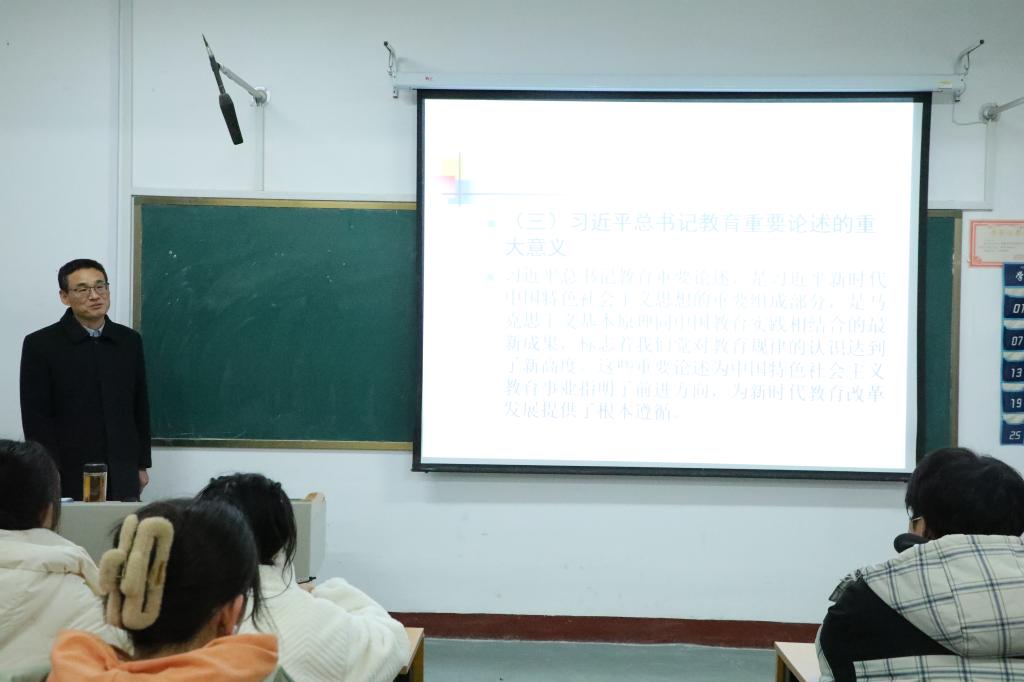 徐瑞教授从时代背景、科学内涵、重大意义和主要内容四个方面对习近平总书记教育重要论述展开了全面详细的讲解。他结合生活中的实例向参会成员阐述教育的基础性、先导性、全局性地位和作用,同时指出新时代的教育工作必须不断深化改革创新,坚持党的全面领导,把立德树人作为其根本任务。在徐瑞教授的讲解引导下,参会成员围绕所学内容展开热烈讨论,并与徐瑞教授积极互动,课堂氛围轻松高效。