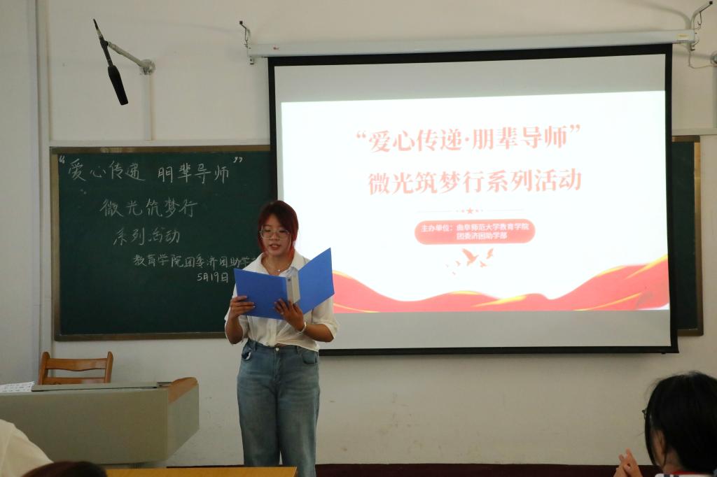 “爱心传递·朋辈导师”微光筑梦系列活动在教育北楼103教室成功启动。本系列活动旨在结合学院“一课一本”计划特色品牌,探索打造特色育人新路径,为家庭经济困难学生提供学习指导与就业扶助。