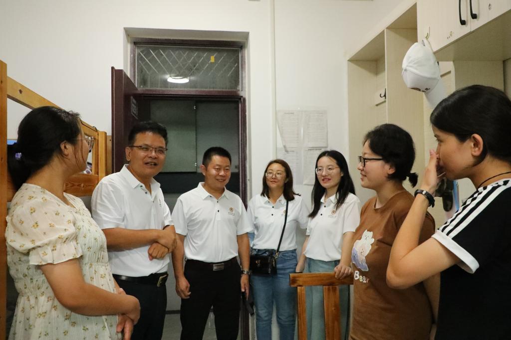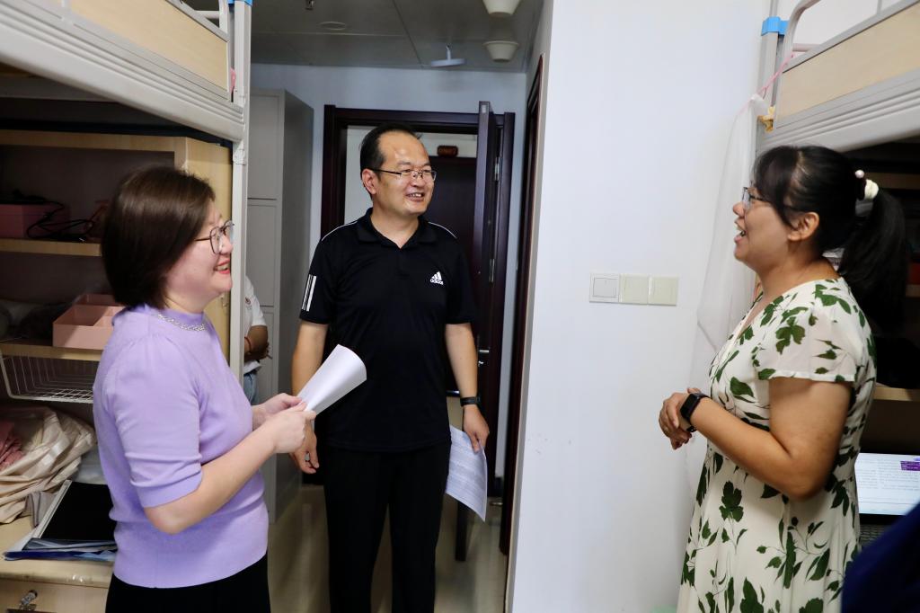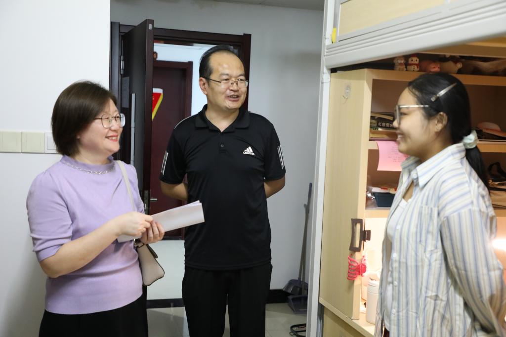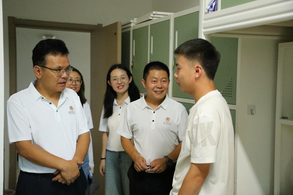 “家是哪里的?”“对学校还适应吗?”“宿舍环境觉得怎么样?”“来了之后有没有碰到什么困难?”一句句叮嘱,饱含师长关怀,一声声问候,满是师生情谊。在宿舍里,学院领导亲切询问了新同学初入校园、宿舍的感受和适应情况。在交谈中,学院领导嘱托同学们既要志存高远,又要脚踏实地,提前做好学业和生涯规划,踔厉奋发,笃行不怠;希望同学们尽快调整状态、适应大学生活,增强安全意识,勤奋努力学习,加强身体锻炼,保持身心健康,团结同学,共同奋进,以饱满的热情和全新的面貌投入到学习和生活中,努力成就更好的自己。