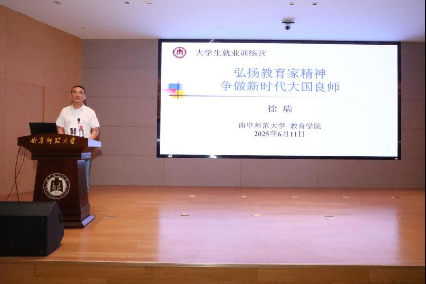 徐瑞教授以“弘扬教育家精神,争做新时代大国良师”为题,紧扣习近平总书记关于弘扬教育家精神的重要指示,系统阐释教育家精神的深刻内涵与实践要求。他结合我校“学而不厌,诲人不倦”的校训精神,以孔子躬耕杏坛的教育实践与好学乐教的精神风范,寄语同学们:要树立“躬耕教坛、强国有我”的志向和抱负,相信教育之功效,善为育人工作赋值,在传道授业中感受教师职业的本真价值,努力成长为新时代大国良师,为教育强国建设积极贡献力量。