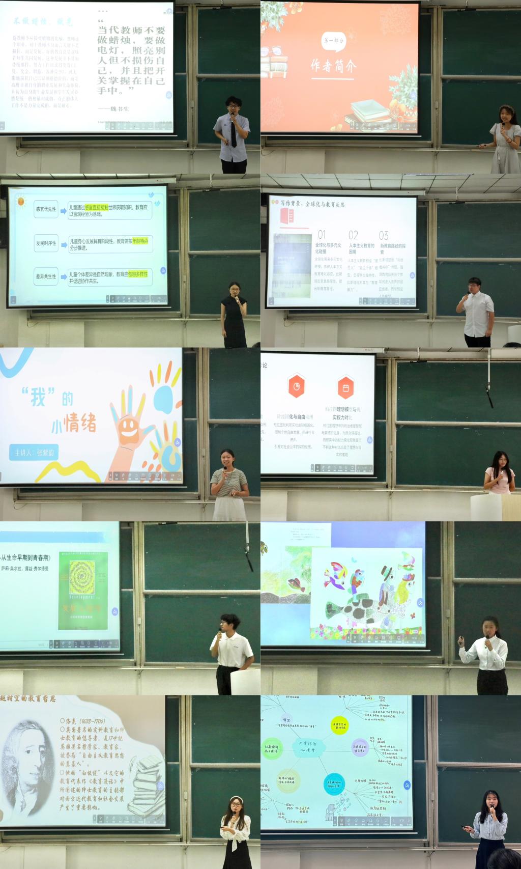 随后,参赛同学依次登台分享读书感悟。他们准备充分,以生动的语言、清晰的逻辑,将个人成长经历、专业学科知识与当下社会热点相融合,多维度解读所读书目,阐发独到见解。他们的分享内容涵盖教育经典著作中先进理念的践行之道、心理学书籍对学生心理特点与教育方法的剖析,以及从书中汲取智慧回应社会现实问题的思路探索。精彩的分享引发了在场同学的强烈共鸣,现场不时响起热烈的掌声。