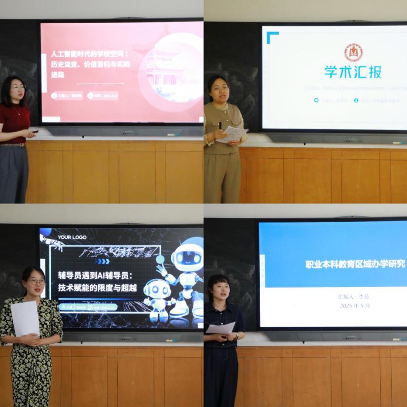 本次论坛由四位博士生围绕各自的研究进行学术报告,内容涵盖职业本科教育、人工智能等方面,并通过清晰的逻辑阐述、详实的数据支撑和生动的PPT展示,充分展现了扎实的学术功底与创新能力。在交流互动环节,评委老师从创新性、实践价值、表达能力等维度进行点评,提出了宝贵的改进建议和研究思路,为同学们进一步完善研究提供了重要指导。