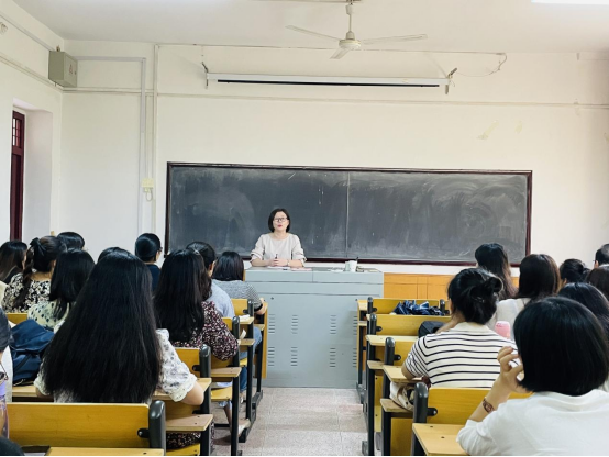 随后,刘亭亭强调了两个方面。一是摆正心态,能够深刻认识和理解教育实习的目的和意义,在工作岗位上要尽快、主动地融入实习集体,并希望学生能够调整好心态,积极适应实习单位的校园文化,展现教育硕士的优秀素质水平。二是做好角色转换,认清实习期间的双重角色,既是学生又是实习教师,在完成实际工作的同时,保证研究生学位论文工作进度,积极与校内外导师沟通联系,工作学习两不误。