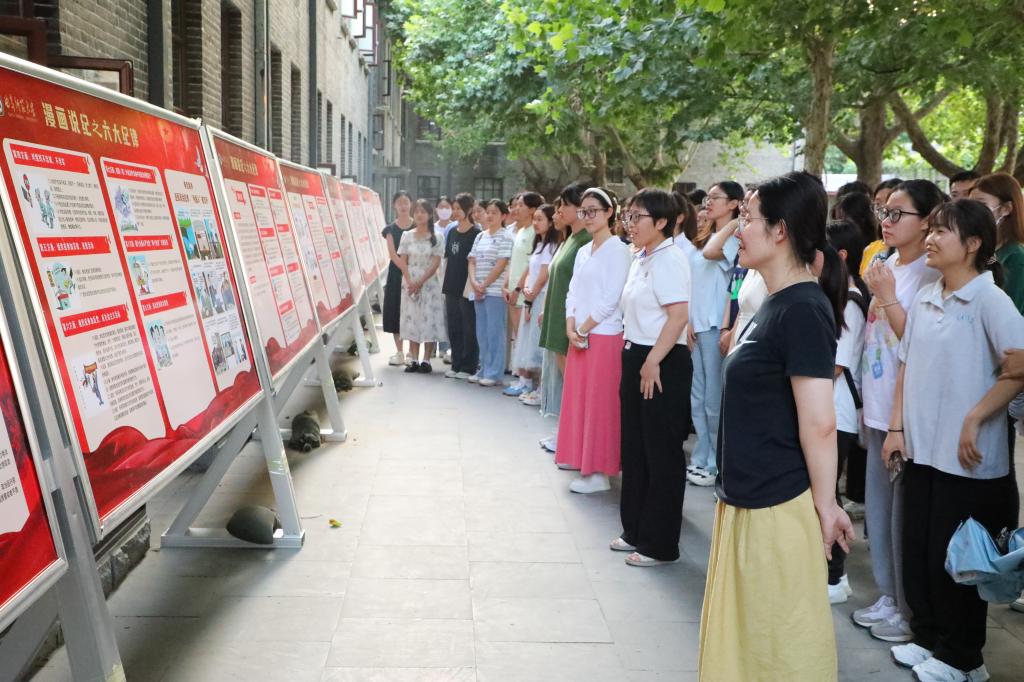 本科生党员与入党积极分子怀着对党的纪律的敬畏之心,整齐有序地参观了主题展。展览以图文并茂的形式,系统展示了党的政治纪律、组织纪律、廉洁纪律、群众纪律、工作纪律和生活纪律的具体内容和要求。本科生第一党支部书记王保英和本科生第二党支部书记张东霞向同志们讲解了党的六大纪律相关知识,帮助本科生党员与入党积极分子深刻认识到党的纪律对于维护党的团结统一、推动党的事业发展的重要性。