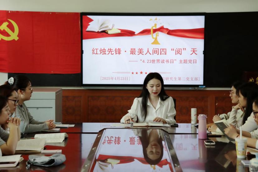 研究生第二党支部在第30个“世界读书日”到来之际,举办“红烛先锋·最美人间四‘阅’天”主题党日。支部全体党员与入党积极分子以书为媒、以学促行,在书香中感悟初心使命,强化纪律规矩意识。