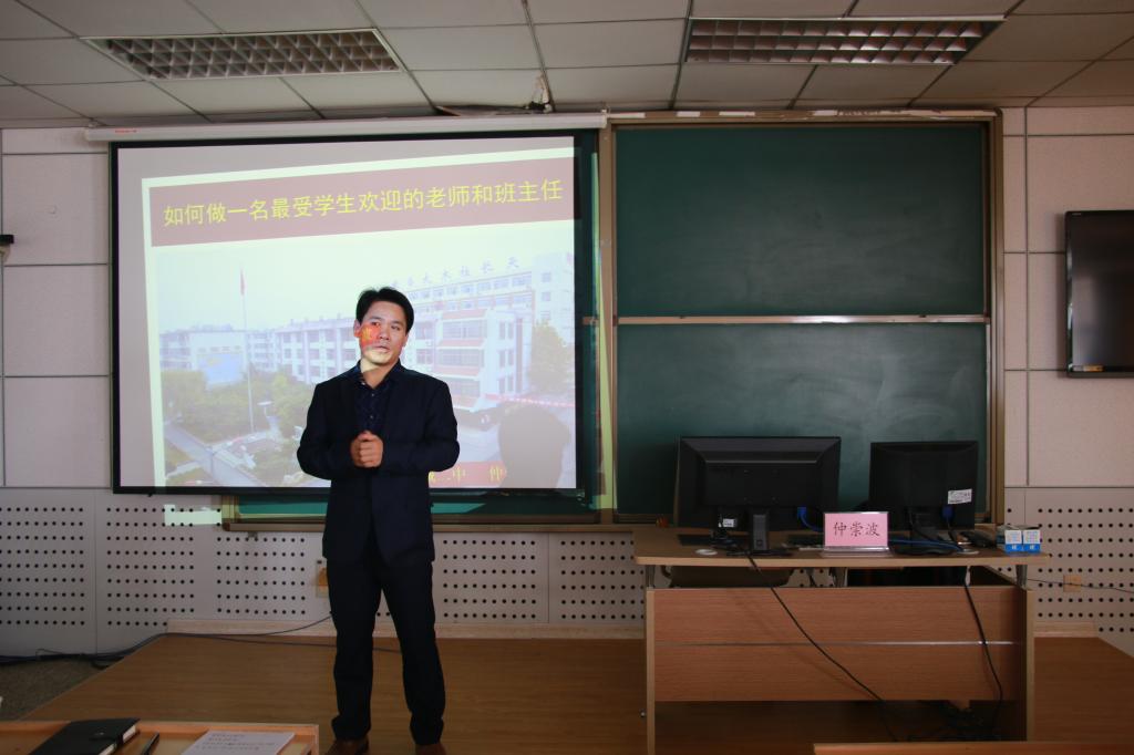 仲校长诙谐幽默的报告方式和妙语连珠的古文引用,引得学生和老师们的阵阵掌声,使同学们在轻松愉悦的氛围中体会到了如何做一名受学生欢迎的老师。仲校长躬身于实践,在实践中发现问题并巧妙地解决问题,为广泛在校师生提供良好的平台和发展的机会。仲校长以恢弘的教育视野、深厚的学术素养,为我们展现了教师和学生良好互动的多彩图景;其辩证缜密的教育管理思维、融会贯通的深远眼光,使我们深受教益。