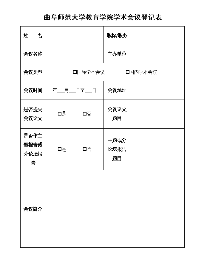 黑料不打烊 教师参加学术会议登记表