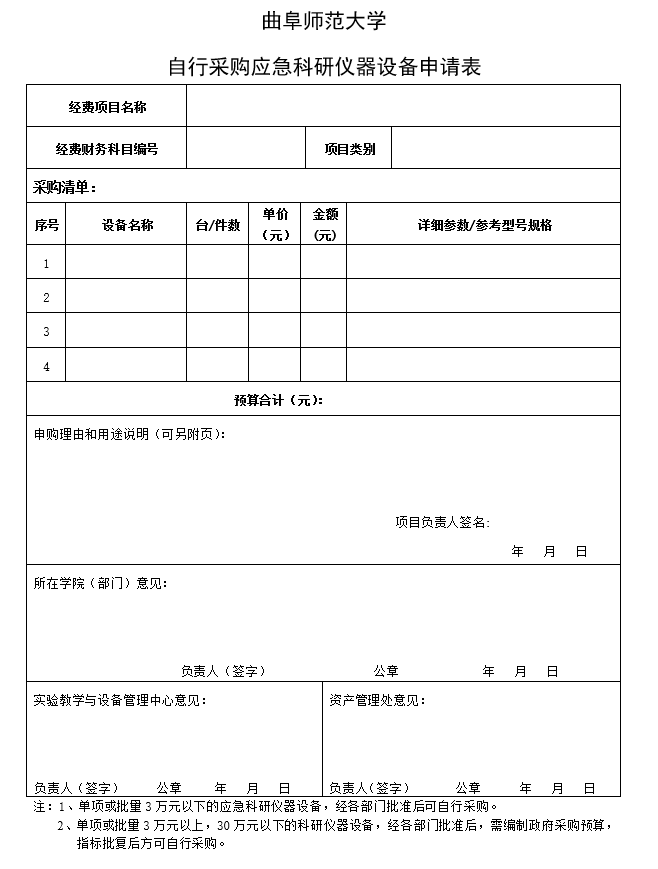 黑料不打烊 科研经费自行采购应急科研仪器设备申请表